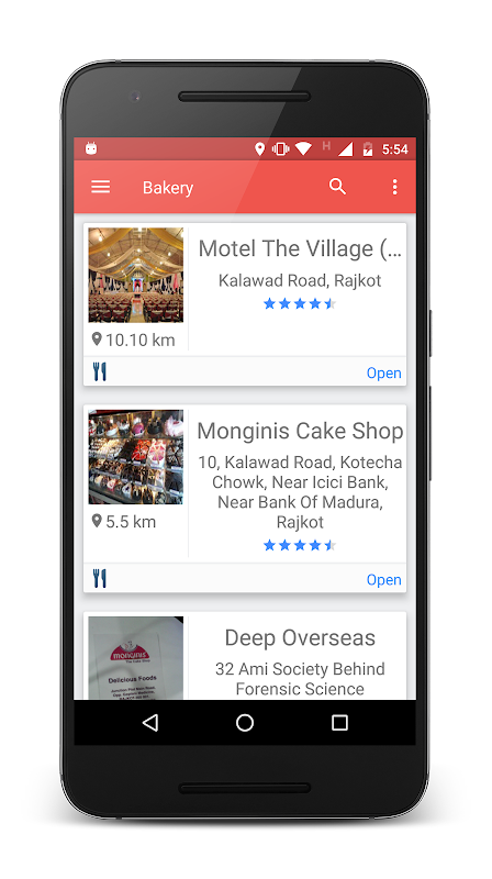- Displays all the details like address, phone numbers, distance from current location ,review ,rating, working hours time etc.