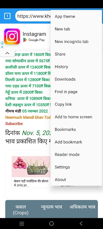 Android kullanıcıları için hızlı, güvenli ve basit Neemuch mandi bhav/ नीमच मंडी भाव uygulama tarayıcısı
