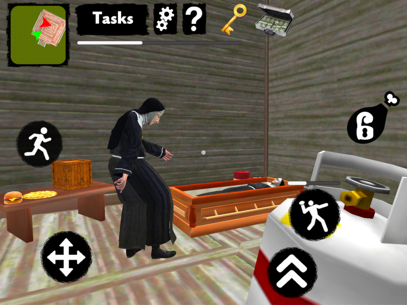 Very often you noticed that this nun behaves strangely. She often said hello, watched you and laughed. You decided not to tell your parents about it and find out her secrets alone. One fine day, you decided to enter this huge church and find out what secret your new evil neighbor is hiding. As soon as she saw you, she became very angry and began to run after you. You managed to escape to your home. You told your parents and your granny about it, but they did not believe it. She seemed friendly to them and they did not believe your words. After these events, you decided to investigate what is happening at this scary house and to find a key to his scary evil secret!