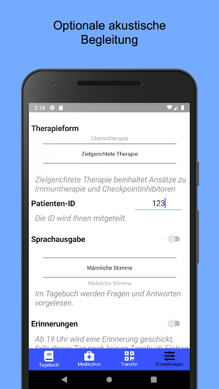 * Girişler yalnızca yerel olarak akıllı telefona kaydedilir ve veriler yalnızca doğrudan QR kodları kullanılarak doktora aktarılır. İnternet üzerinden veri aktarımı yoktur.