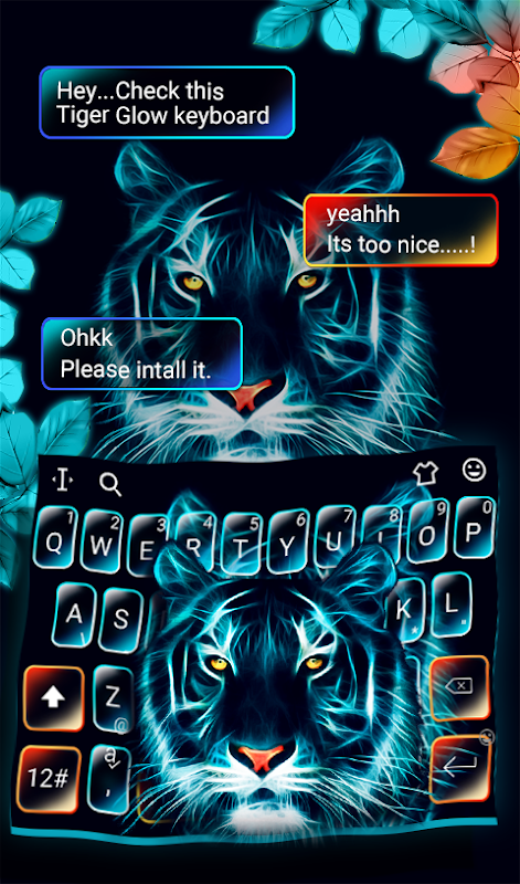 Neon Tiger Blaze Keyboard Theme with the highlights of gesture typing, slide typing, advanced auto correction and voice input features.