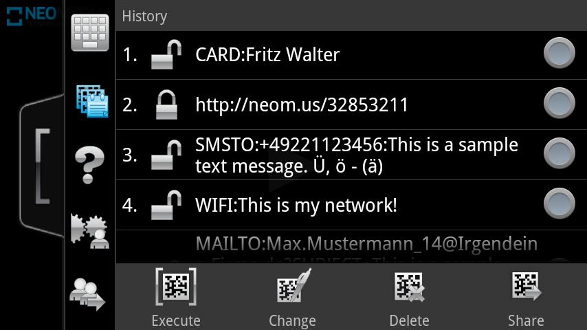 - Scan vCard, meCard, WiFi, phone number and email codes