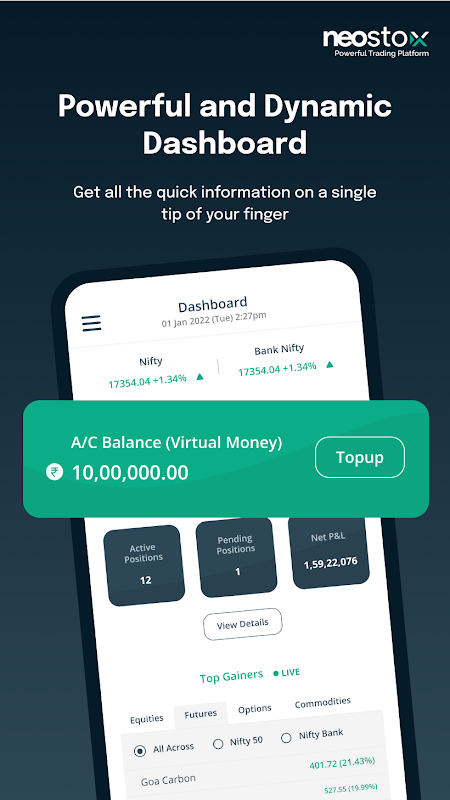 Neostox, Hindistan'ın NSE'de canlı ticareti deneyimlemek için sanal paraya sahip ilk %100 gerçek zamanlı ticaret platformudur. Neostox'un temel fikri, iyi stratejileri olan, analize odaklanmak isteyen ve canlı yayına geçmeden önce test için sanal parayla gerçek zamanlı olarak ticaret yapabilecekleri bir platforma ihtiyaç duyan milyonlarca tüccara yardımcı olmaktır.