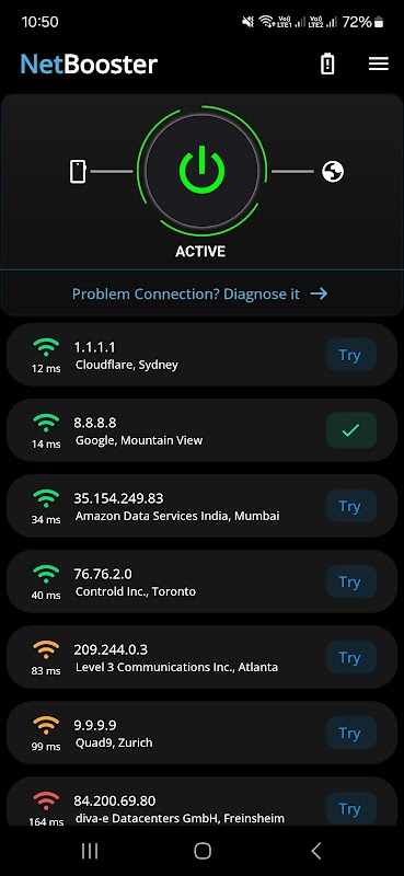 Tek dokunuşla DNS optimizasyonu - Anında tarama yapın ve en hızlı kullanılabilir DNS sunucusuna bağlanın.