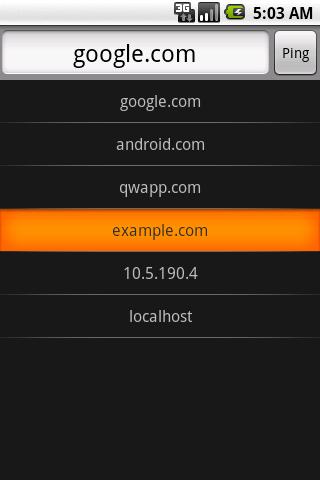 If you have pinged more than one host, the most recent hosts will appear in a list when you touch or click the host entry field at the top of the screen.