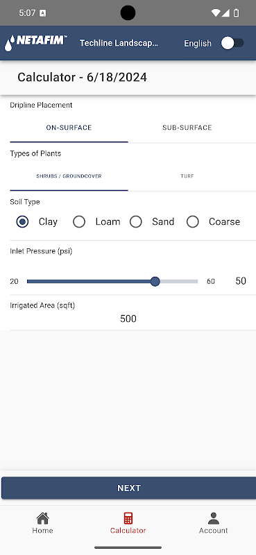 Netafim Techline Hesaplayıcı peyzaj tasarımını, proje malzemelerini ve hesaplamaları belirlemek için bir kılavuz sunar. Bu, toprak, bitkiler, damlama hattı yerleşimi, sulanan alan, basınç, akış hızı ve damlatıcı aralığına ilişkin değişkenleri içerir.