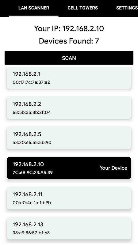 4. LAN Tarayıcı (WIFI'nıza bağlı olan cihazları listeleyin).