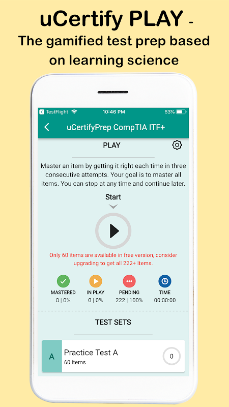 -UCertify Play'i sunar - TestPrep'in bilim öğrenmede derin bir temele sahip oyunlaştırılmış bir sürümü. -uCertify Play, rastgeleleştirme, ustalık ve aralıklı öğrenmeyi kullanarak öğrencilerin hem akılda kalmasına hem de daha iyi hatırlamasına yardımcı olur.