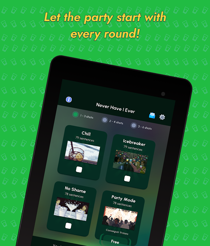 Arkadaşlarınızla partilerinizi ve toplantılarınızı renklendirecek eğlenceli, cesur ve kahkaha dolu bir oyun arıyorsanız, ihtiyacınız olan ücretsiz uygulama budur. Never Have I Ever, unutulmaz anlar garanti eden orijinal ifadelerle efsanevi içki oyununu bir üst seviyeye taşıyor.