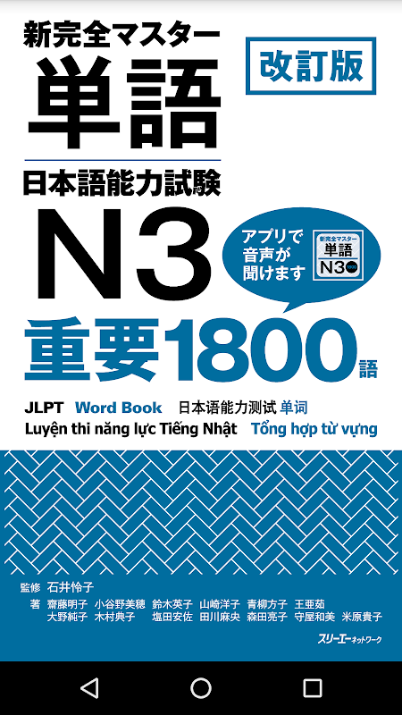 Bu Uygulama ile, "改訂版 新完全マスター単語 日本語能力試験N3 重要1800語" ders kitabındaki tüm başlıkları ve okuma parçalarını duyabilirsiniz.