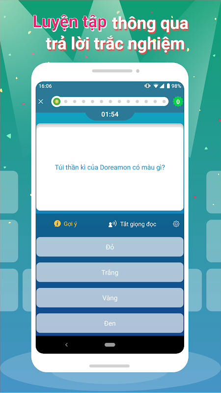 ⚡ Chế độ trắc nghiệm ⚡ Chương trình sẽ đưa ra câu hỏi kèm với danh sách đáp án, người chơi sẽ chọn một đáp án cho là đúng nhất trong thời gian 2 phút.