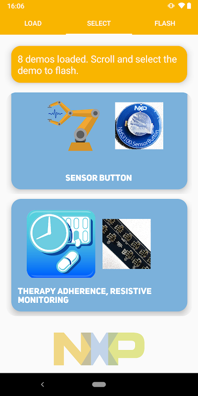 NXP'nin sağladığı demo listesinden seçim yapabilir veya kendi demonuzu uygulamada kullanıma sunabilirsiniz. Seçilen donanım yazılımı görüntüsü, NFC arayüzü üzerinden NHS31xx IC'ye gönderilecektir. İndirme tamamlandığında, ikinci aşama önyükleyici artık kullanılamaz: IC sıfırlanır ve yeni uygulama yürütülür.