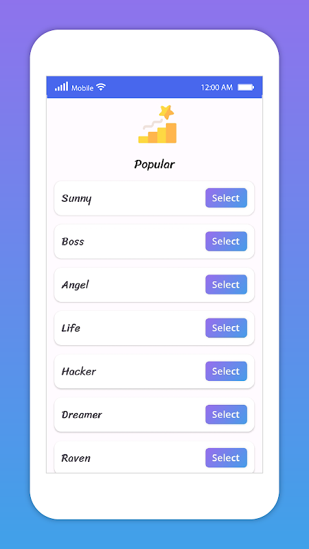 Takma Ad Oluşturucu ve İsim Stili Uygulamasıyla Tanışın! Takma Ad Oluşturucu ve Ad oluşturucu uygulaması, harika semboller ve süslü metinler kullanarak oyunlar için özel ve şık adlar oluşturmak için harika bir araçtır. Ad Stili Takma Ad Oluşturucu uygulamasına hoş geldiniz. Kullanıcı Adı Oluşturucu ve Şık Takma Ad Oluşturucu uygulamasıyla, BGMI, diğer oyunlar veya sosyal medya için ücretsiz takma adlar oluşturabilirsiniz.
