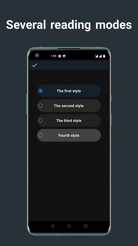 Gece okuma modu uygulaması ayrıca birkaç tema ile birlikte gelir, size uygun olanı seçebilirsiniz.