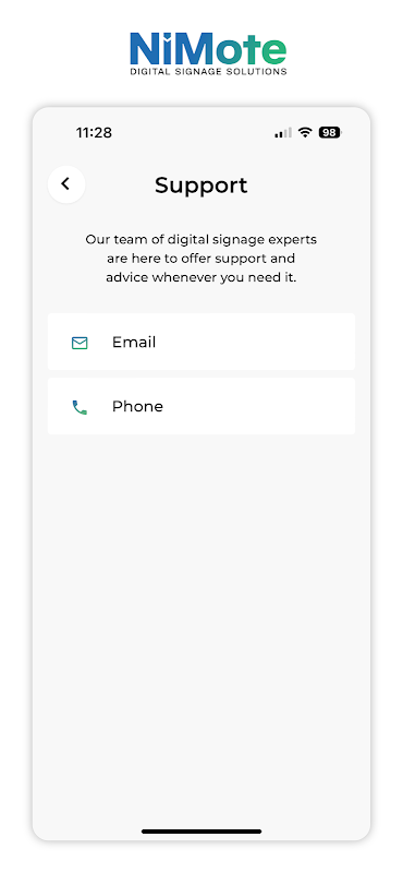 NiMote Digital Signage için mobil arka ofis arayüzü