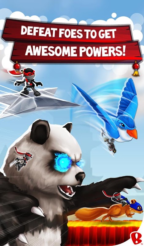NinJump Rooftops is a fast-paced game where your goal is to jump between rooftops, avoid obstacles, defeat enemies, and stay alive as long as you can. Jump, slash & run for your life! Grab coins & jade crystals along the way to upgrade your ninja abilities. Hit 3 matching enemies in a row for an epic power-up boost. Fly through the air on a zip wire. Dodge throwing stars, deadly fire pits & evil squirrels. Experience full-on pandemonium riding on the back of a skyscraper-sized panda. Master the mighty ninja "double jump", where you jump, then jump again in mid-air, defying all laws of physics & logic. Whatever you do, just don't fall off the roof or let the baddies get you. Stay alive!