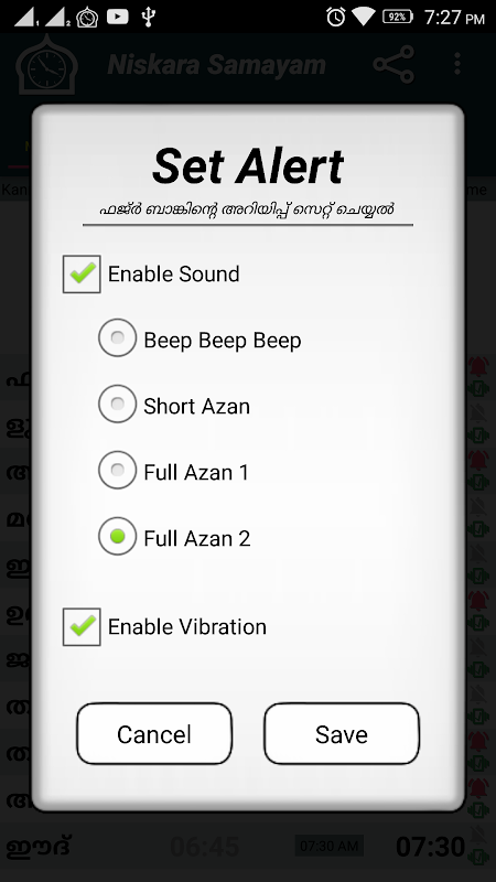 * Ezan ve Iqama uyarıları.