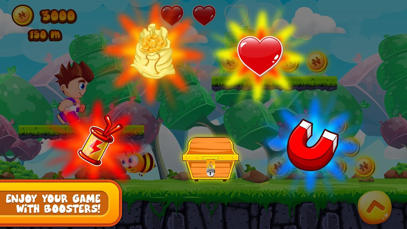- Jump over obstacles like dragon tree and stones; beware of buzzing honey-bees.
