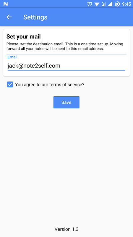 When you first open the app, you will configure it with your default email address that all future notes will be sent to.