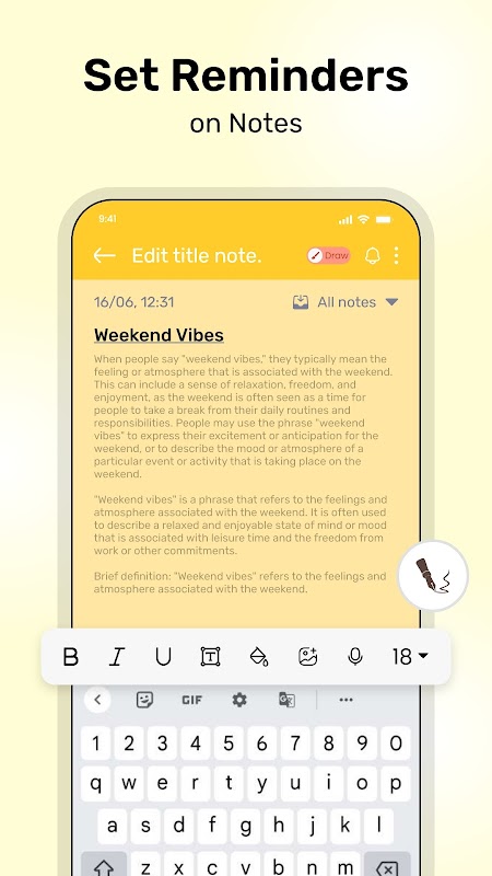 * Metin notlarını zahmetsizce oluşturma ve düzenleme.