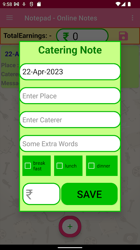 - Sadece catering çalışanlarına özel bir özellik. Belirli bir tür için gerekli tüm verileri doldurabileceğiniz başka bir not biçimi vardır.