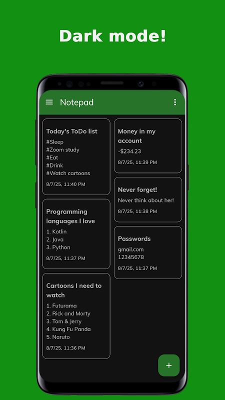 Verileriniz %100 gizlidir; hesap, senkronizasyon veya bulut gerekmez. Not Defteri tamamen çevrimdışı çalışır ve her şeyi cihazınızda güvenli bir şekilde saklar.