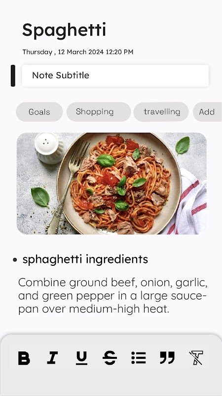 Not Alma Uygulaması, düşüncelerinizi kaydetmenize ve fikirlerinizi kolayca takip etmenize yardımcı olmak için tasarlanmış temel bir not alma aracıdır. İster öğrenci, ister profesyonel, ister bir şeyler yazmayı seven biri olun, bu uygulama tam size göre!