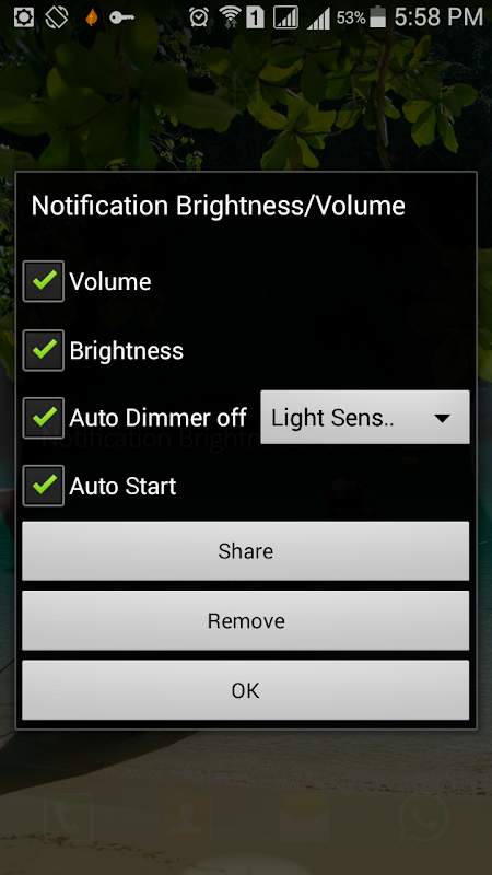 Now decrease brightness even below system level which can be used in night to decrease strain on eyes.The first two indicators will decrease brightness below system level.Set to autostart on phone boot.Set Dimmer to turn off automatically when light is detected or by setting time to help in case you forget to turn in off.Light sensor is preferred if present.