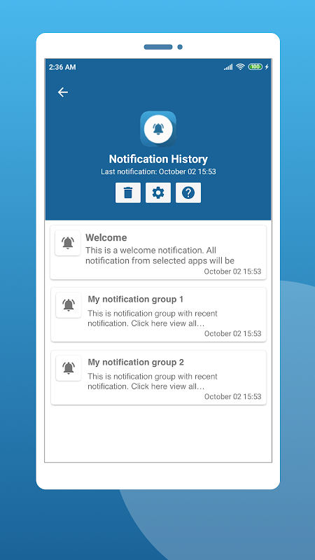 Note that it only save notification history log when you have allowed required permissions for this app.
