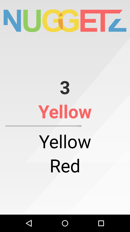 Nuggetz is a reaction game for your Android device. It is based upon the Stroop effect. The task is easy: Just name the color in which a word is written, not the word itself. If you make a mistake the game is over.