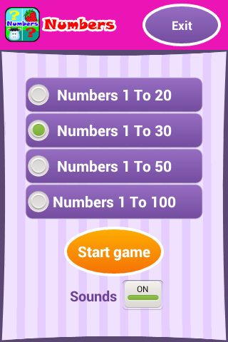 √ 4 Modes of difficulty Numbers 1-20, 1-30, 1-50 and 1-100