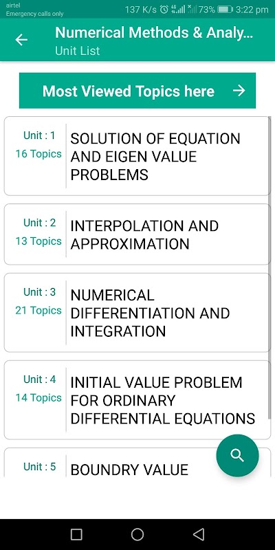 The app is a complete handbook of Numerical Methods & Analysis which covers important topics, notes, materials & news on the course. Download the App as a reference material & digital book for Mathematics & mechanical engineering programs & degree courses. The study is also used extensively in Artificial intelligence, algorithms, real time systems and machine learning.