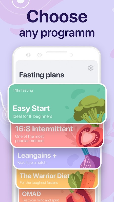 Choose from a range of fasting diet programs tailored to both beginners and experienced dieters. Our diet plans suit your preferences and goals – Easy Start, 16:8, OMAD, The Warrior Diet, and more. Also, you can create a customized manual schedule that perfectly slots into your daily routine.