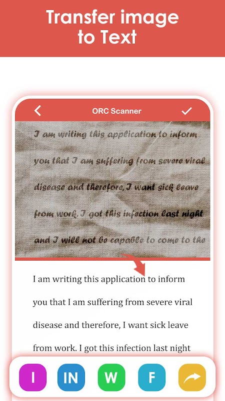 bu uygulama akıllı telefonunuzu çok hızlı ve kullanışlı bir metin tarayıcıya dönüştürecektir. bir nesne, resim, pdf veya belgeden karakterleri otomatik olarak tanıyabilir ve ayıklanan metni kaydedebilir, düzenleyebilir, paylaşabilir veya kaydedebilirsiniz.