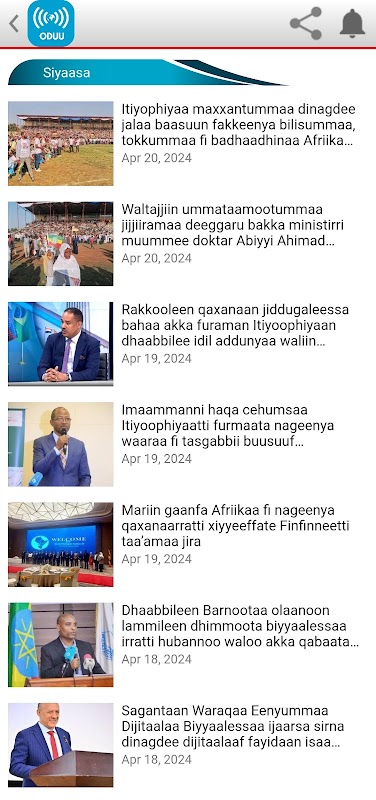 Oduu Afaan Oromoo, amanamoo gara gara irraa iddoo tokkoti uygulaması kanan hordofaa!