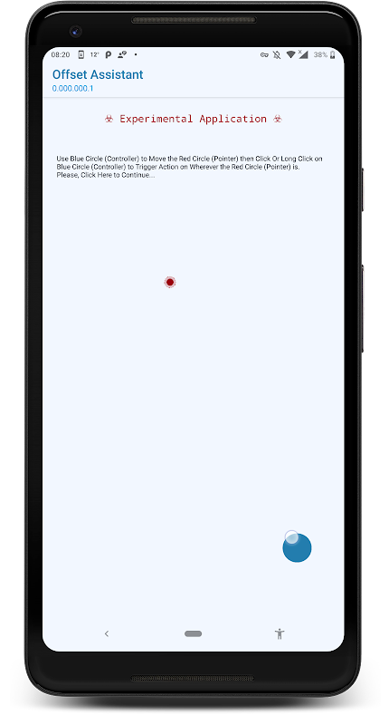 Simply Move Red Circle (Pointer) by Blue Circle (Controller) then Click/LongClick on Blue Circle (Controller) to Perform Action on Wherever the Red Circle (Pointer) is.