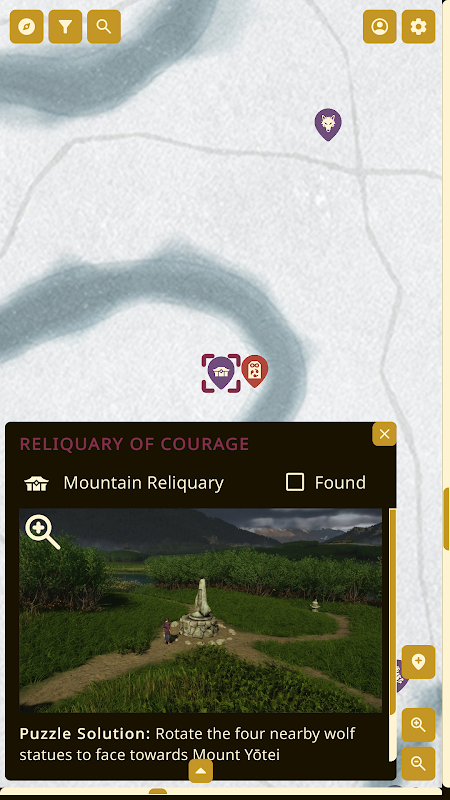 -- Güçlü filtreleme sistemi: Uygulama tüm ayarlarınızı hatırlar. Tek bir kategoriye odaklanın, diğerleri haritadan otomatik olarak kaybolacaktır. Kendi filtre ön ayarlarınızı oluşturun ve kaydedin (örneğin, "Bulmaca Kutularını ara" veya "Lord Saito Mektuplarını ara") ve tek dokunuşla aralarında geçiş yapın. -- Etkileşim ve kolaylık: Konumları "bulundu" olarak işaretleyin, uygulama takip edilen kategorilerdeki ilerlemenizi otomatik olarak güncelleyecektir. Belirli bir bölgeyi temizlemek mi istiyorsunuz? Listeden bir bölge seçin, harita yalnızca sınırları içindeki işaretleri gösterecektir.