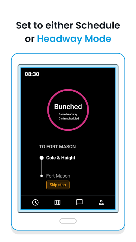 Swiftly'nin Araç İçi Uygulaması, doğrudan transit araç operatörlerine navigasyon yardımı ve gerçek zamanlı performans geri bildirimi sağlayan, operatöre yönelik basit ve güvenli bir uygulamadır.
