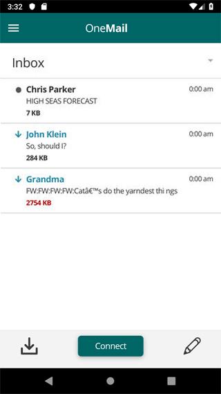 OneMail, normalde bunu imkansız hale getiren uydu telefonu veya daha yavaş 2g hücresel ağlar gibi sınırlı bant genişliğine sahip bağlantılar kullanırken normal e-posta hesabınızı takip etmenizi sağlar.