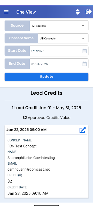 Tıpkı oneview.franchiseventures.com gibi, Franchise Ventures hesaplarınızı yönetebilirsiniz. Cep telefonunuzu kullanarak doğrudan uygulamadan telefon veya e-posta yoluyla iletişim kurabilme özelliğiyle mevcut potansiyel müşterileri, geçmiş potansiyel müşterileri ve kredilendirilen potansiyel müşterileri uygulamada görün. Artık yeni potansiyel müşterilerinizi görmek için bir bilgisayara bağlı olmanıza gerek yok. Ayrıca push bildirimlerini kabul edin ve müşteri adayı geldiğinde anında bilgilendirileceksiniz ve bildirime tıkladığınızda söz konusu sözleşmeye ilişkin en son müşteri adayını getirecektir.