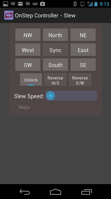 OnStep is a DIY computerized GoTo controller for Telescope mounts. This App controls most functions through Bluetooth from your Android cell phone or tablet. The user can align the mount, park/un-park, program PEC, and find and go to objects from several catalogs. Including: NGC, Hersclel 400, and Messier catalogs along with an catalog of bright stars.