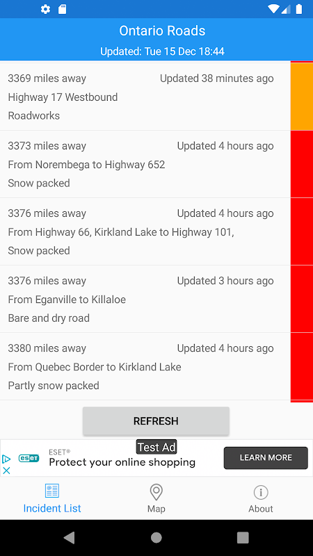 - On the map view each incident is color coded as well as being represented by an icon showing the incident type.