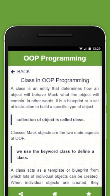 OOP Programming is an app specially developed for Beginner programmers which help the beginner Programmer for Learning Object Oriented Programing