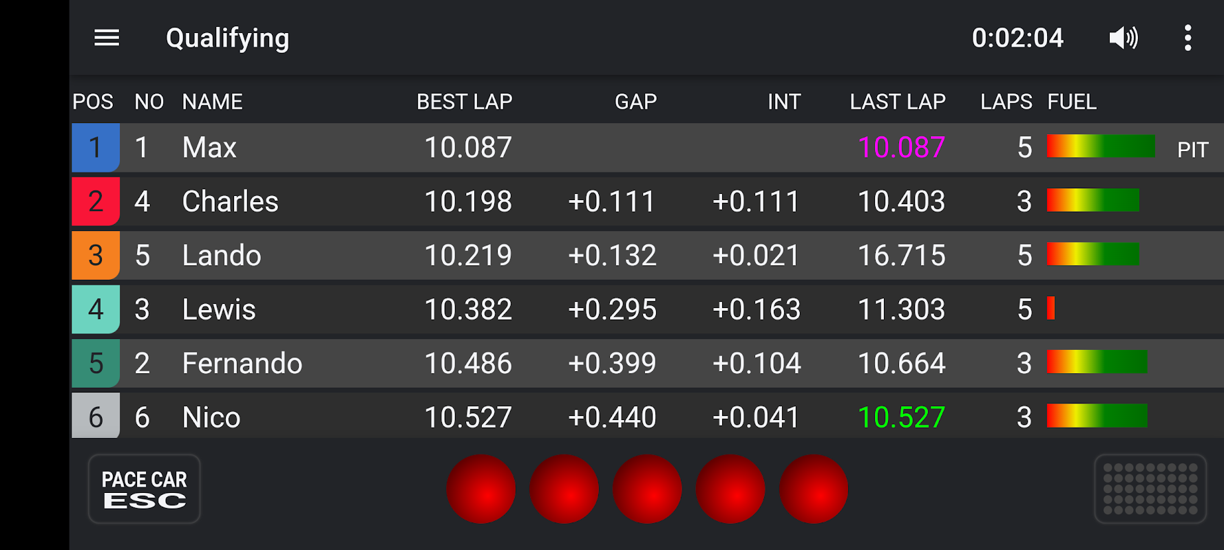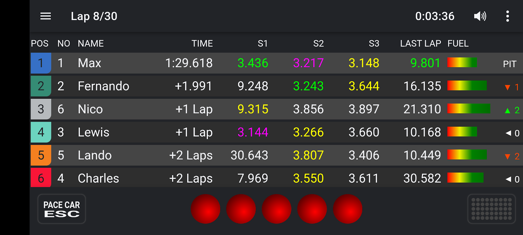 - acil durumlarda hız arabasını gönderin veya "sarı bayrak" aşamasında tur saymayı geçici olarak devre dışı bırakın.