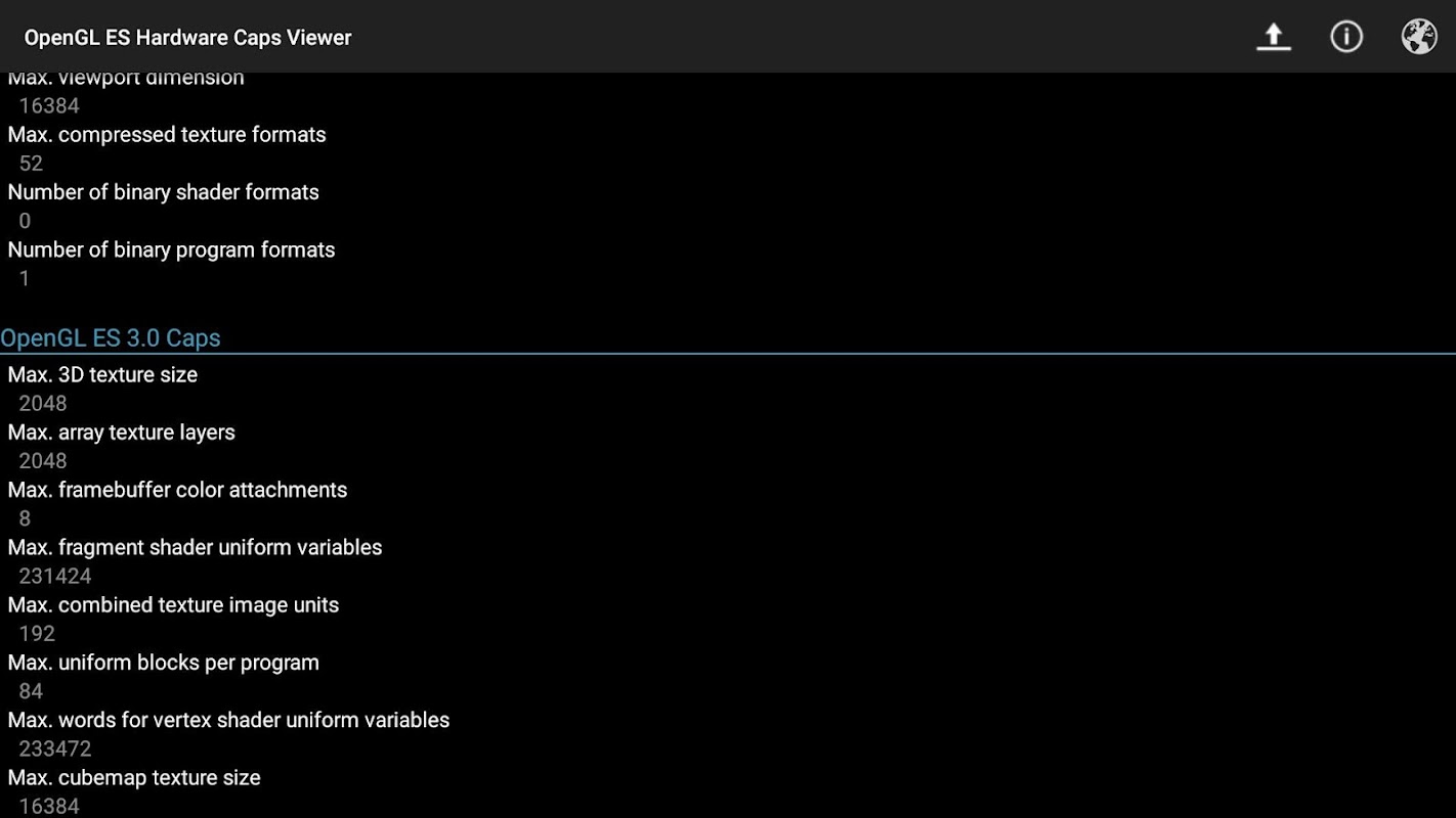 Diğer geliştiricilerin OpenGL ES uygulaması (ve cihaz) bilgileri, filtre, örneğin kontrol böylece Bu donanım raporlar daha sonra, kamuya açık yerlerde bir veri tabanı (http://opengles.gpuinfo.org), yüklenebilir uzantıları ve karşılaştırın cihazların durumu kendi hedef platformlarının Kapasitesi kontrol etmek.