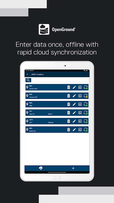 OpenGround Bulut bağlantısına sahip saha tabanlı Geoteknik veri toplama aracı