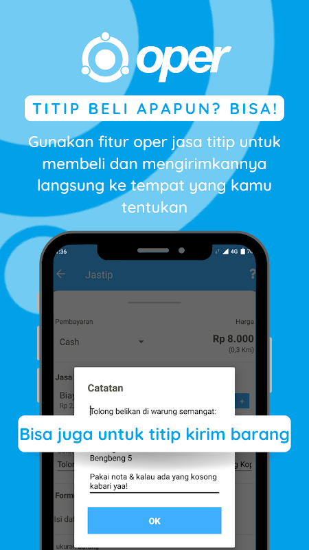 Oper ile hayatınız kolaylaşacak! Purbalingga'daki gençler tarafından yapılan bu araba çağırma uygulaması, kullanımı kolay tek bir uygulamada ulaşım hizmetleri, yemek dağıtımı ve çeşitli diğer hizmetler sunar. Sadece birkaç tıklama ile seyahat hizmetleri sipariş edebilir, en sevdiğiniz restoranlardan yemek sipariş edebilir ve hatta temizlik veya teslimat hizmetleri sipariş edebilirsiniz.