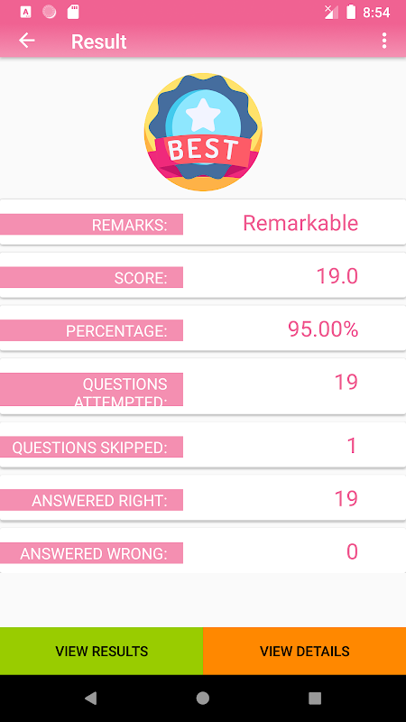 Bir MCQ Sınavını denedikten sonra, kullanıcı, uygun ödül, ayrıntılı raporlar, farklı ödül galibiyetlerinin sayısıyla en yüksek puanlarla özet raporu görüntüleyebilir. Kullanıcı ayrıca gerekirse test raporlarını temizleyebilir.