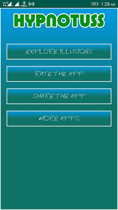 Hipnotizörü indirdiğiniz için teşekkürler, etrafınızdaki dünyayı birkaç saniye boyunca farklı şekillerde görmenizi sağlayacak oyun.