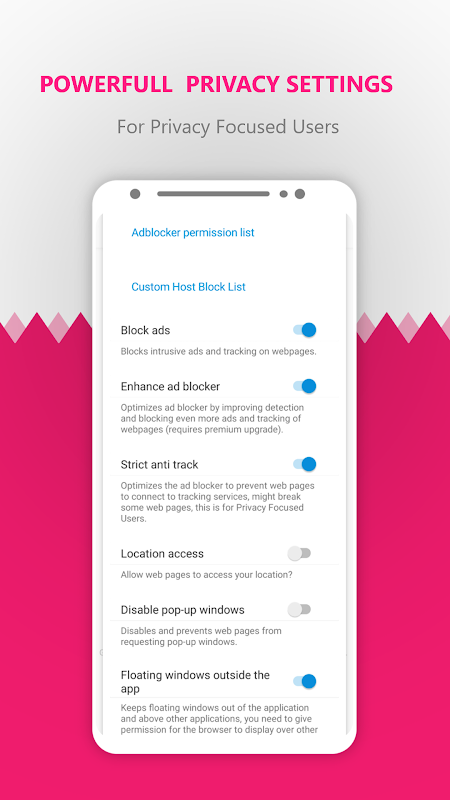 Reklamların ve istenmeyen içerik algılamanın etkinliğini artırır, ayrıca kendi özel engelleme listenizi oluşturabilirsiniz.